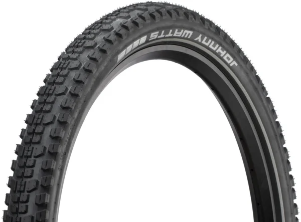 Der Johnny Watts 27,5+ Faltreifen von Schwalbe bietet optimale Sicherheit, sowohl auf Asphalt als auch in leichtem Gelände. Seine großen Profilblöcke sorgen für hervorragende Rolleigenschaften, speziell auf hartem Untergrund, und eine hohe Lebensdauer. Die definierten Bremskanten erhöhen die Bremstraktion und die Double Defense Karkassenkonstruktion mit RaceGuard unter der Lauffläche lässt hinsichtlich Pannenschutz keine Wünsche offen.